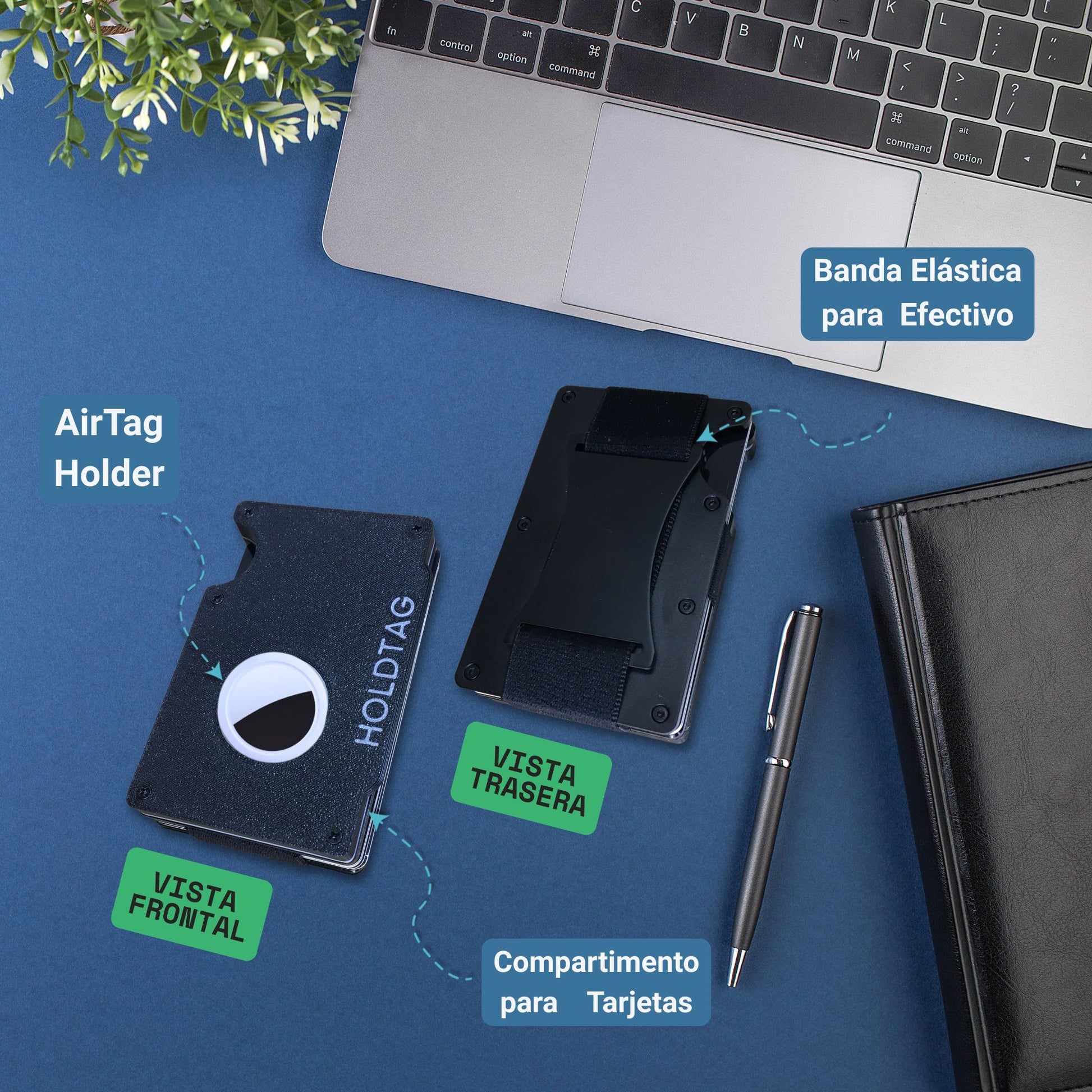 Tarjetero con diseño a medida para AirTag y YubiKey, que asegura un ajuste firme sin riesgo de pérdida. Compatible con localizadoesr y rastreadores Apple, protege tu cartera y facilita su recuperación en caso de extravío. AirTag no incluido.