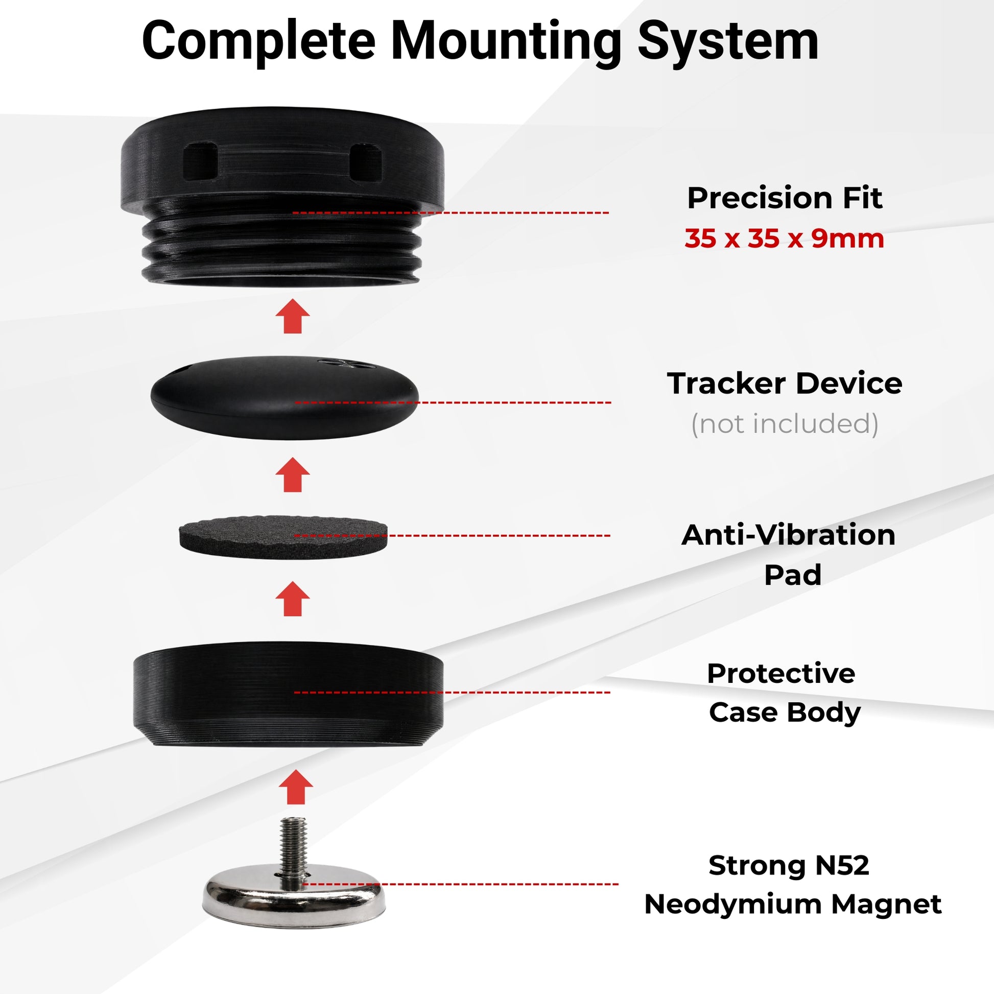 Compatible con localizadores de hasta 35 × 35 × 9 mm. Ideal para coche, bicicleta, dron, equipaje, cartera y más.