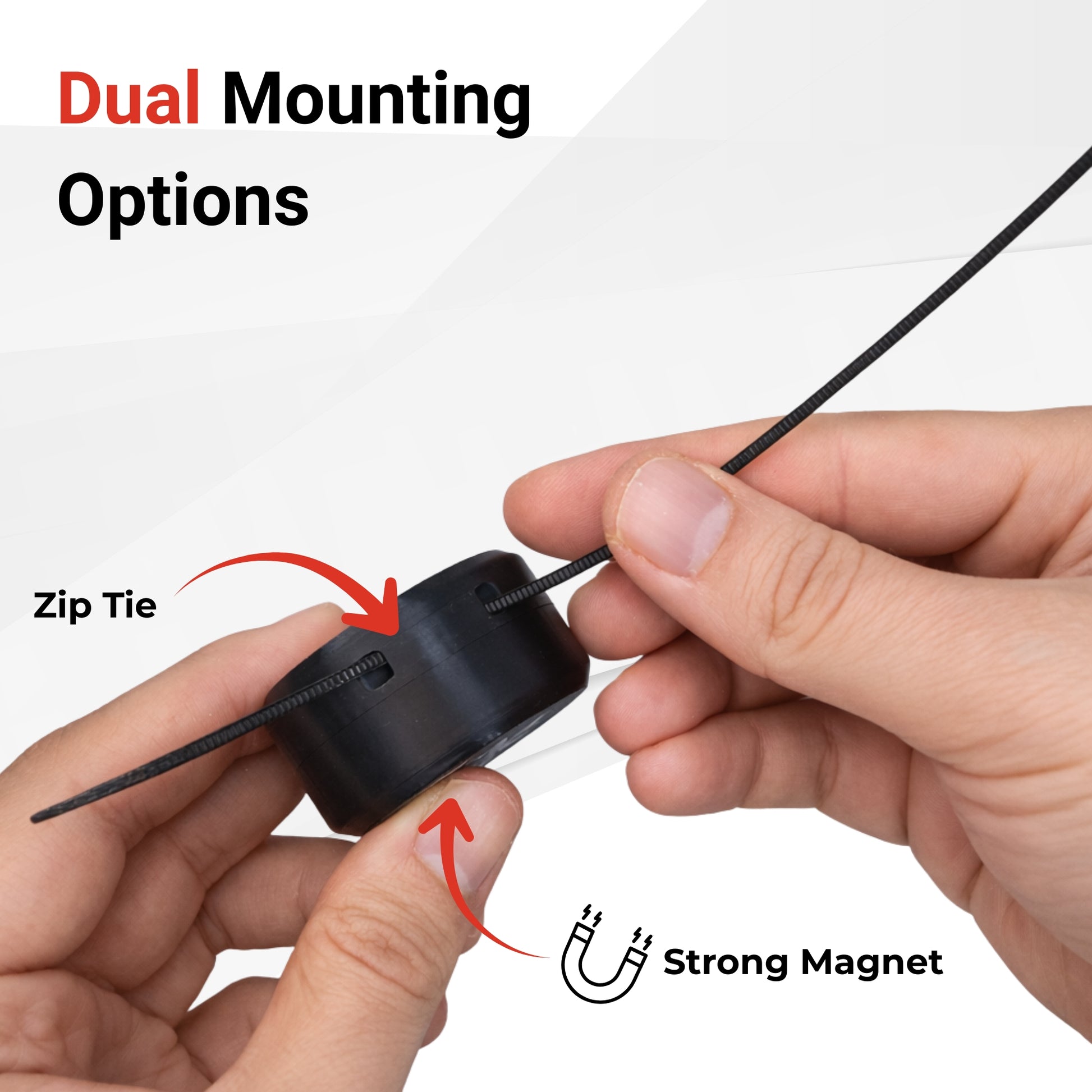 Se adhiere a cualquier superficie metálica en segundos. Sin adhesivo, sin bridas, sin herramientas.